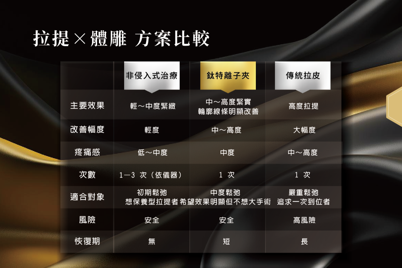 FEATURE DESCRIPTION從皮下結構著手的微創緊實療程,介於非侵入式儀器與拉皮手術之間黃金治療計畫